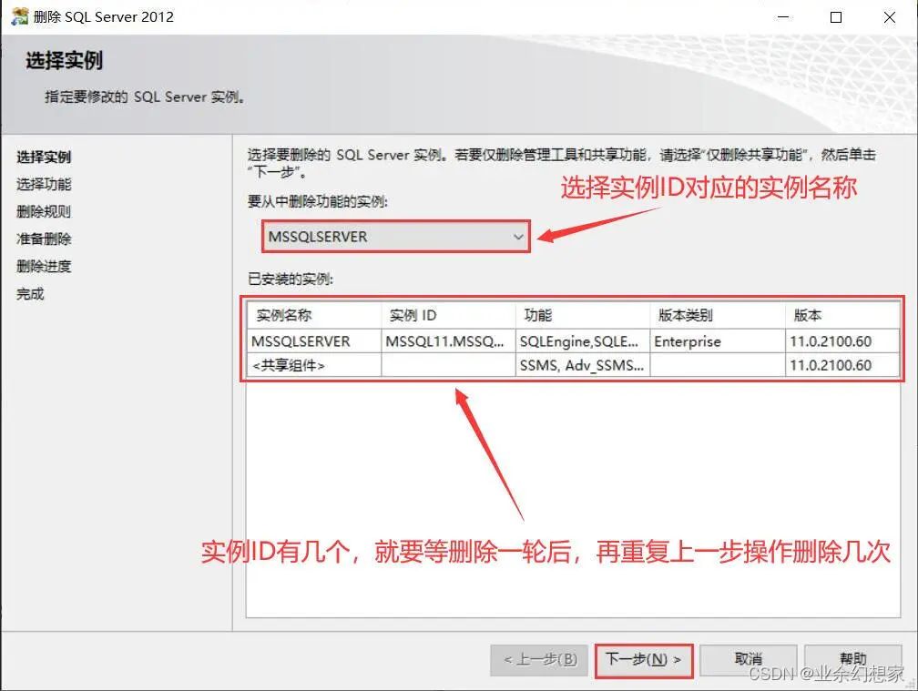 选择实例,点击【下一步】注:选择示例时,这里有多少个实例ID就删除多少次,如果有两个实例ID,删除完一轮后,需要重复一遍上一步的操作再回到这里再删除一遍,把实例一个一个全部删除!!!