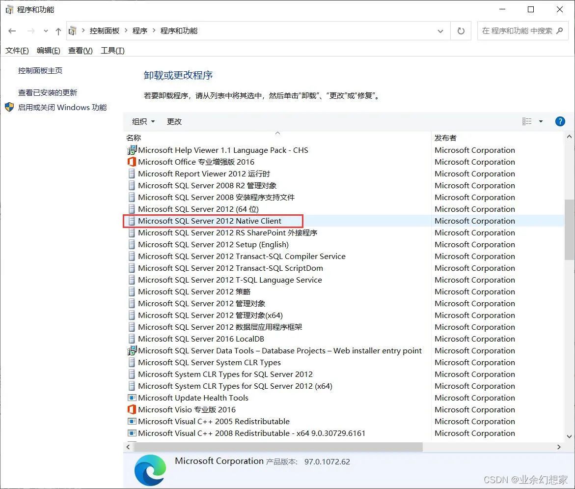 注:每个人的可能会有不同,顺着列表看一下,只要是带有 SQL Server 的都要删除掉