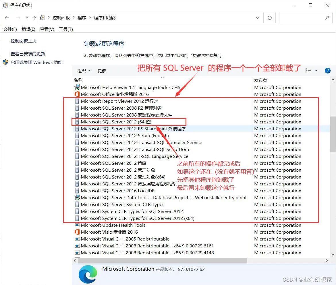 最后把其他 SQL Server 的程序全部都【卸载】了