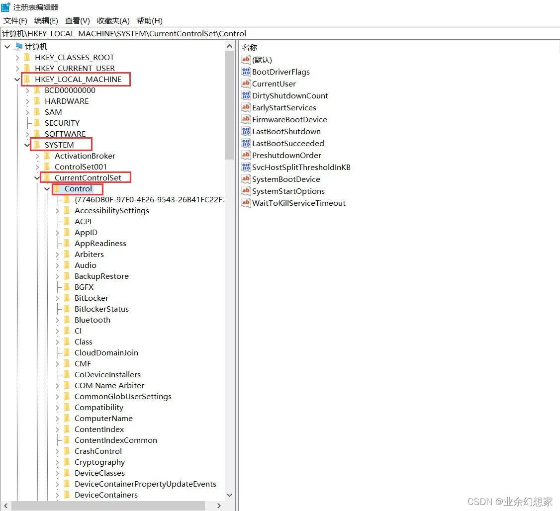 找到 HKEY_LOCAL_MACHINE \SYSTEM\CurrentControlSet\Control 并展开