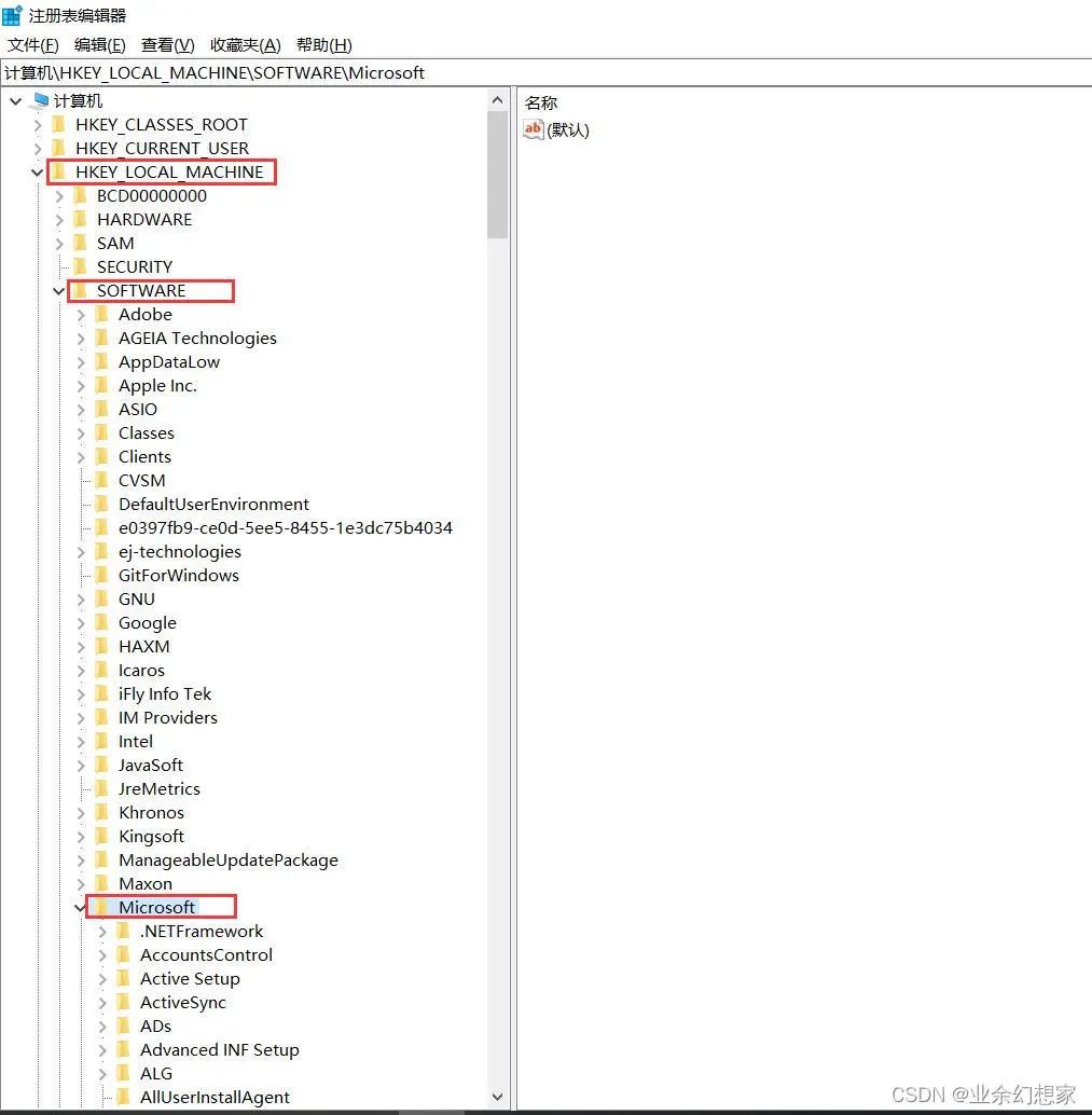 然后找到 HKEY_LOCAL_MACHINE \SOFTWARE\Microsoft 并展开