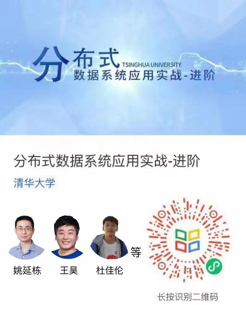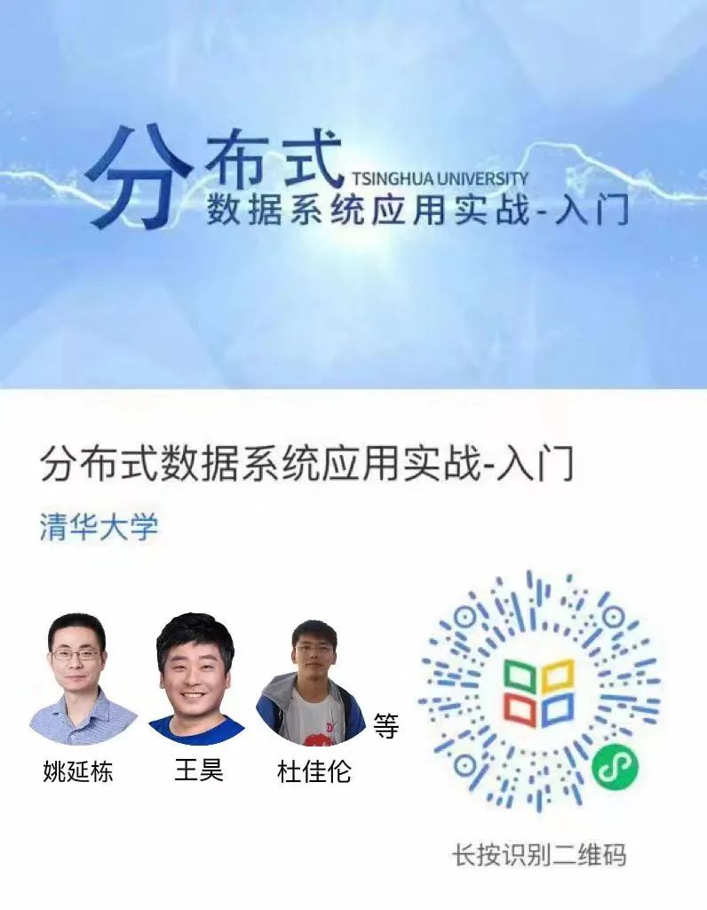 课程已上线「学堂在线」,欢迎大家点击阅读原文开始学习《分布式数据系统应用实战》-入门,或根据自身程度识别下方二维码来学习。