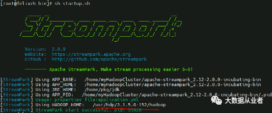 添加export HADOOP_HOME=/usr/hdp/3.1.5.0-152/hadoop到bin/startup.sh。sh startup.sh