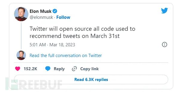 值得一提的是,源代码泄露事件发生之前,马斯克曾承诺会在 3 月底开源 Twitter 用于推荐推文的代码,以便任何人都可以对其进行审查并仔细检查是否存在安全漏洞。