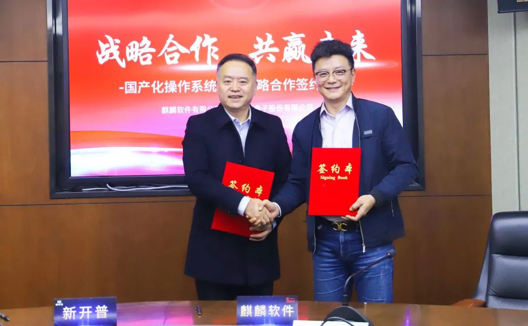 近日,新开普电子股份有限公司(以下简称“新开普”)与麒麟软件战略合作签约仪式在河南郑州举行。新开普集团董事长杨维国、麒麟软件高级副总裁宋介鹏代表双方签署战略合作协议。新开普副总裁焦征海、麒麟软件区域营销中心副总经理陈红伟、河南CIO社区副秘书长史亚东等参与了此次签约仪式。