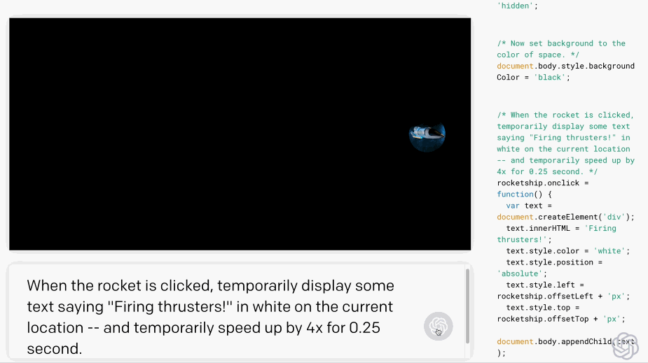 比如开发小游戏,准确率高达72%!Codex 不仅能够收到指令后自行编程,还能够开发小游戏。