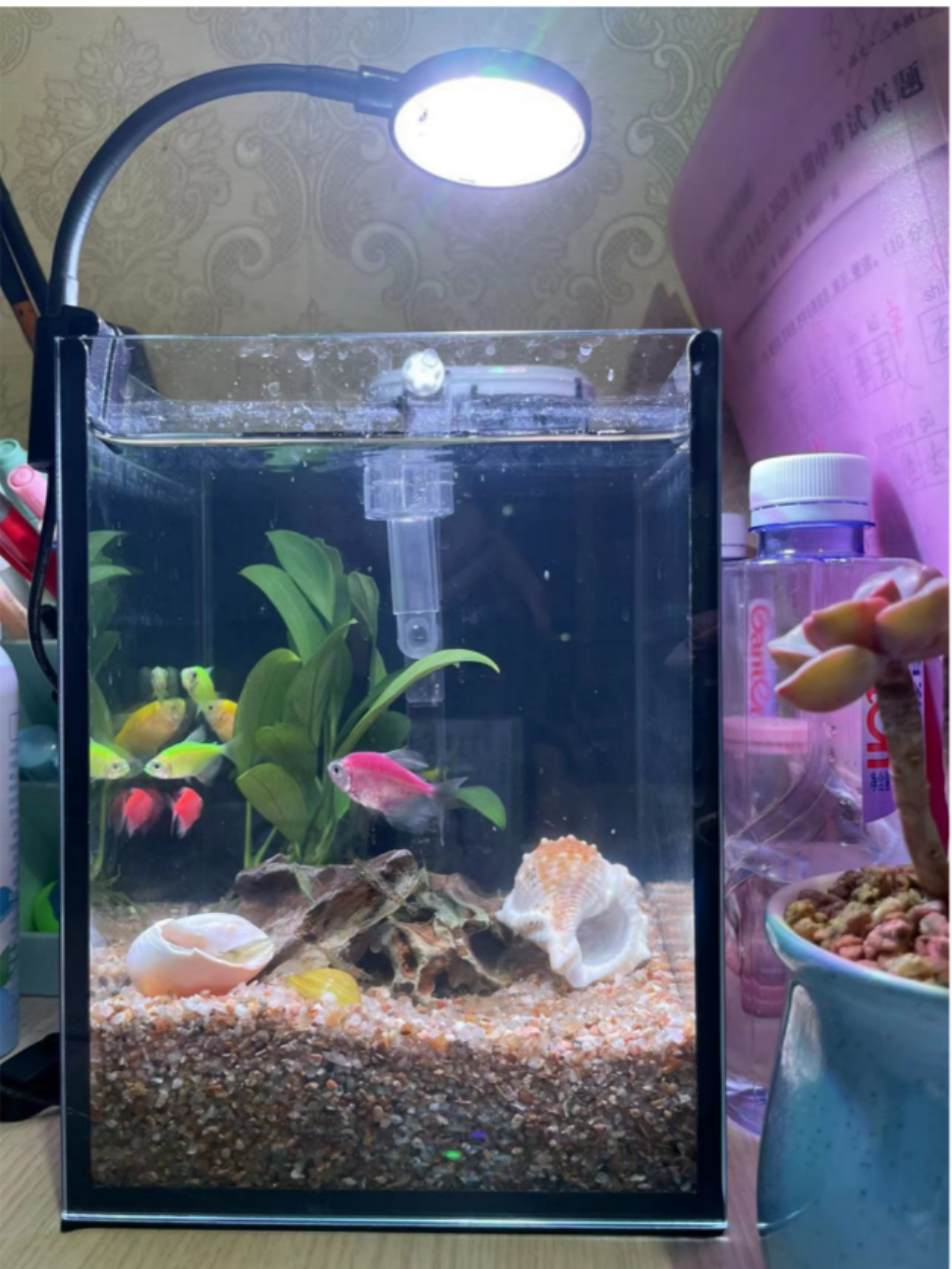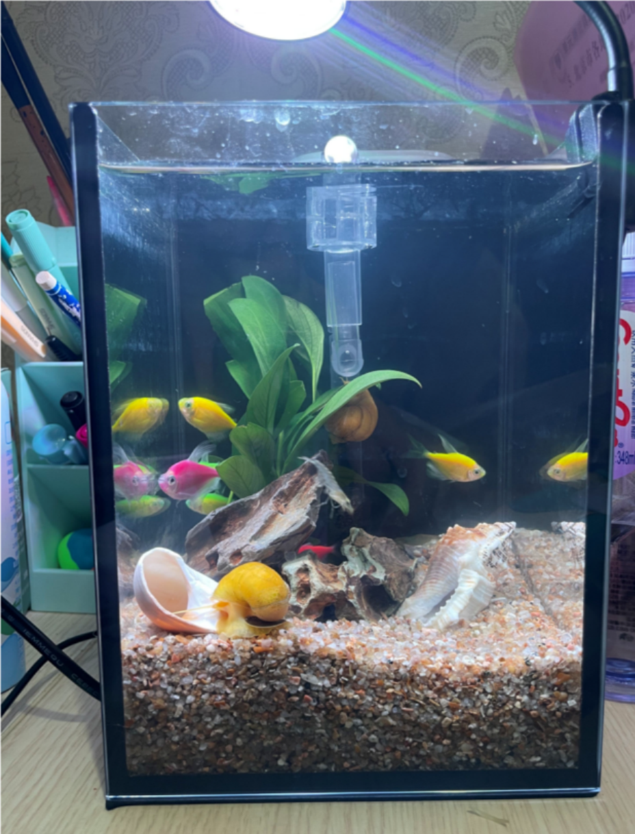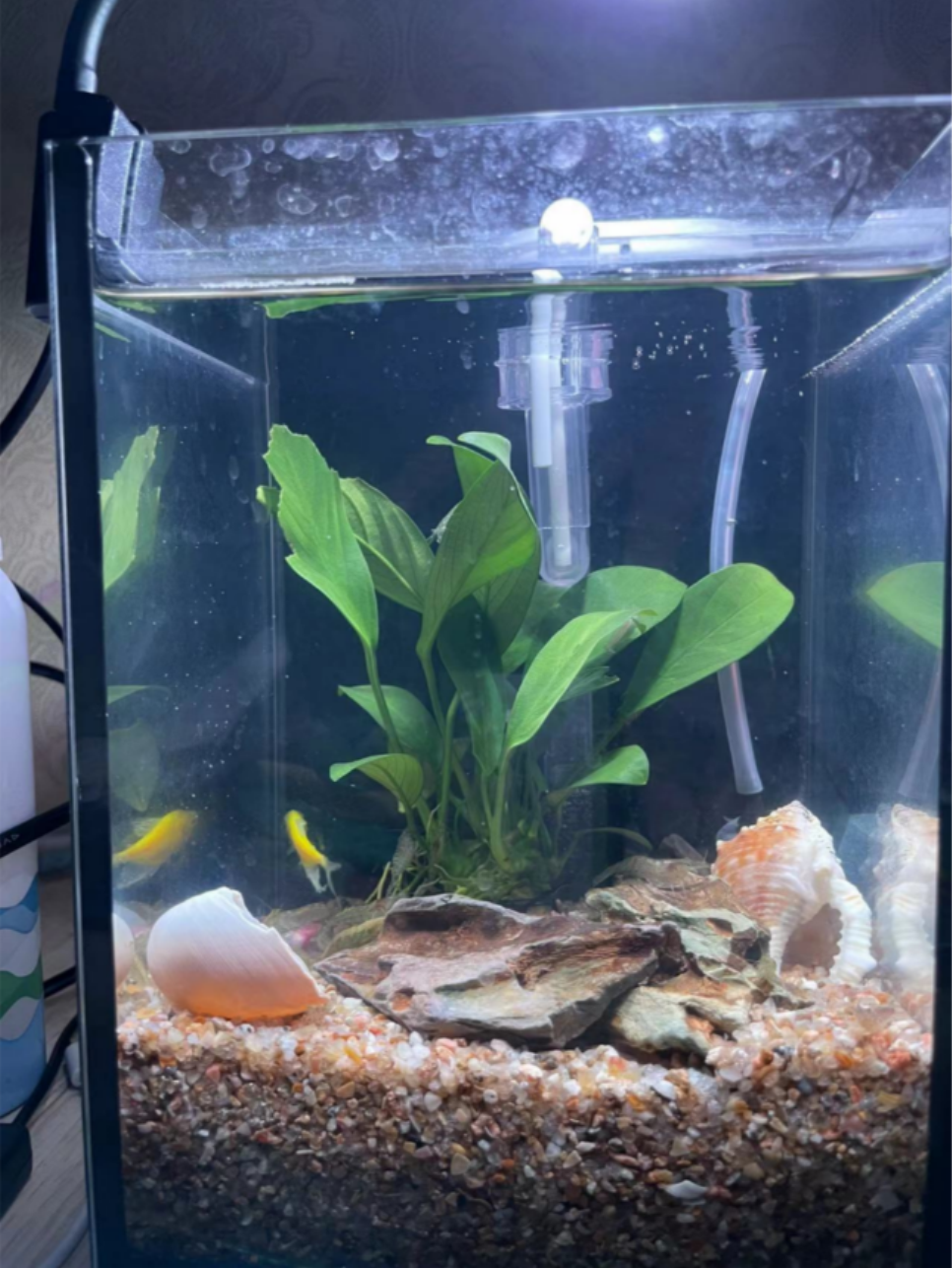 一次买了6条天使鱼,周日把黄金螺换成了蛤蜊