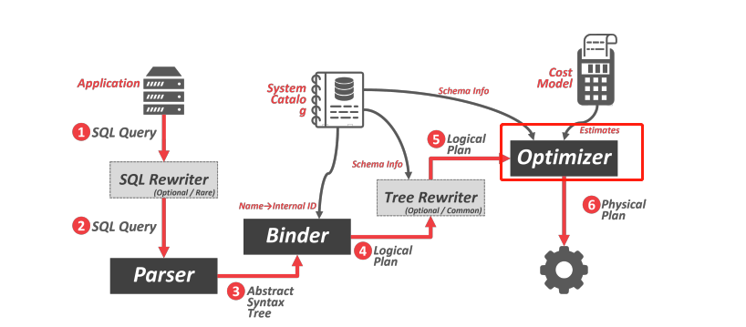 优化器是啥?在sql整个生命周期里处于什么样的位置,起到什么样的作用,cmu15445 课程(https://15445.courses.cs.cmu.edu/fall2022/notes/14-optimization.pdf)中对此有一些直观的描述。