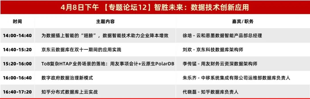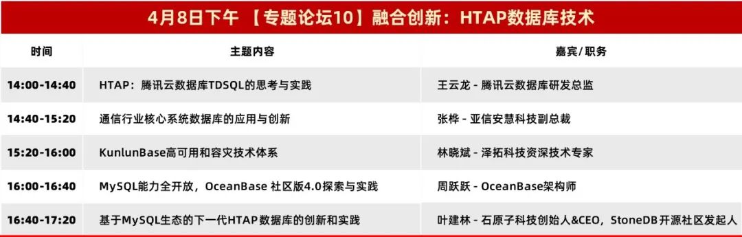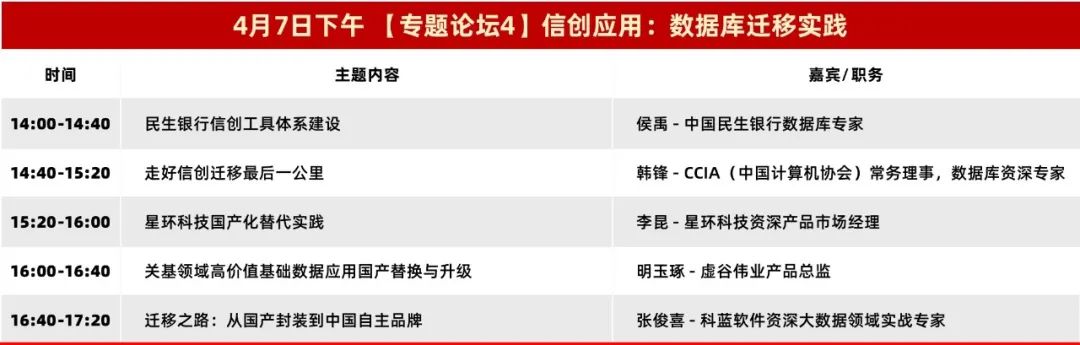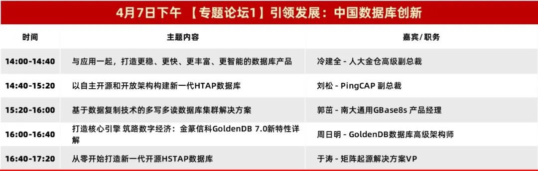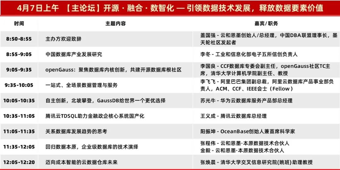 - 本次大会得到了产业主管单位的支持和指导,工信部电子五所信创负责人李冬将在主论坛发表《中国数据库产业发展研究》;