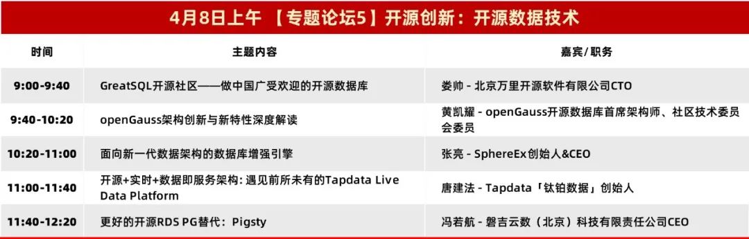 当今数据库和数据技术仍处于不断变革演进的高速发展期,新的应用场景层出不穷、新的技术和产品不断涌现。如何在滚滚向前的技术河流中保持自身优势、推动产品持续创新?这个答案无疑是“开源”,这种通过社区协作充分调动广大开发者的创新性和创造力的方式助力数据技术发展驶上快车道。万里数据库、openGauss、SphereEx、钛铂数据、磐吉云数将在“开源创新:开源数据技术”专题分享如何通过开源加速数据库和数据技术产品的技能提升和落地。