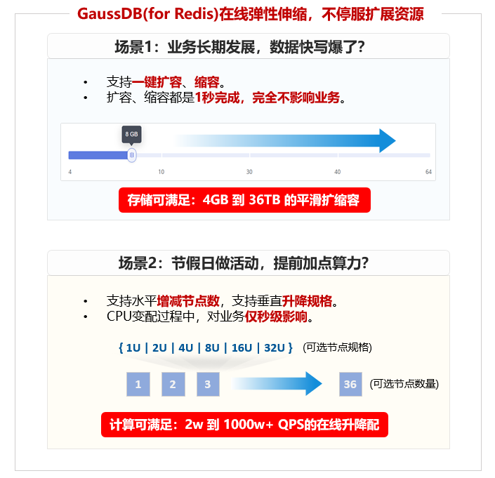 游戏首发只是个开头,长期运营中,会给玩家举办各类节日活动,这时候就要求数据库能够弹性伸缩。GaussDB(for Redis)存算分离架构最具特色的就是:秒级扩容。使用华为云GaussDB(for