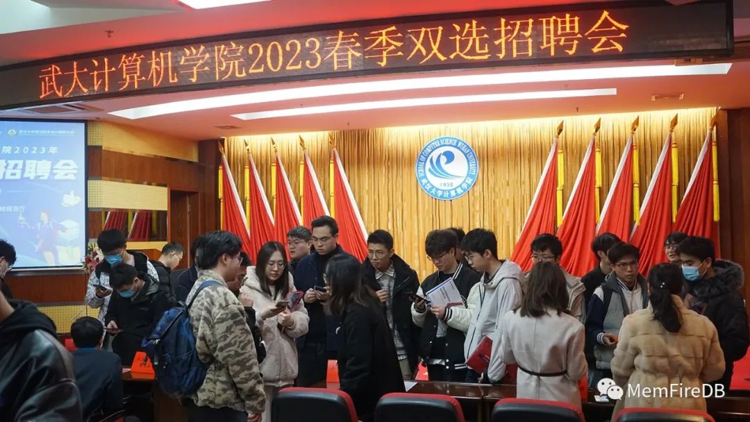 3月24日上午,武汉大学计算机学院在八楼报告厅举办2023年春季双选招聘会,邀请校友企业回“珈”招聘,为毕业生送岗上门。