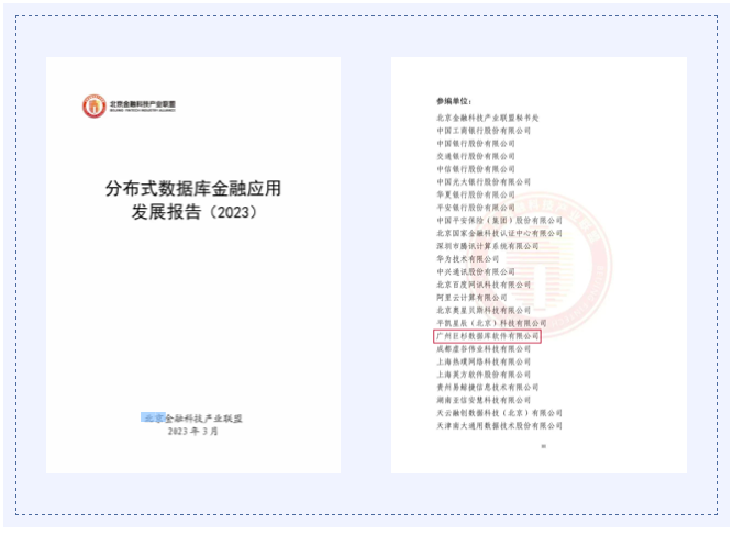 赋能行业,参编《分布式数据库金融应用发展报告》