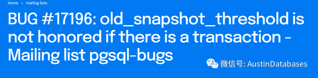 Thread: BUG #17196: old_snapshot_threshold is not honored if there is a transaction : Postgres ProfessionalRe: [HACKERS] Document that vacuum can't truncate if old_snapshot_threshold >= 0 (mail-archive.com)
