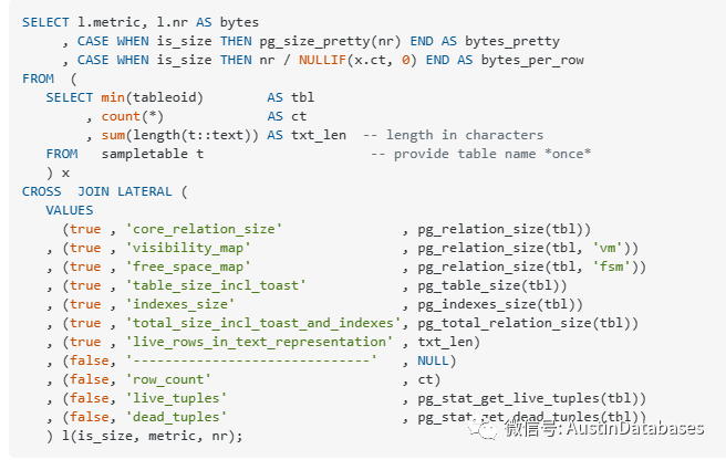 https://dba.stackexchange.com/questions/320395/significant-size-differences-between-size-calculations-for-tables-in-postgresq另外此次的学习中,还发现了一个较好的分析表磁盘空间利用的语句,可以从上面的网址获得,但是不建议在大表和生产繁忙的系统中运行,有可能有性能风险。