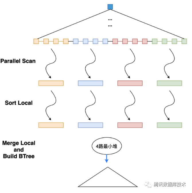 尤其对数据的归并排序做了多种优化,使得常规的归并排序能够充分的并行,充分利用CPU、内存和IO的资源。在并行创建索引之后的合并步骤,也使用了一套简化的算法,正确处理各种索引结构的场景。