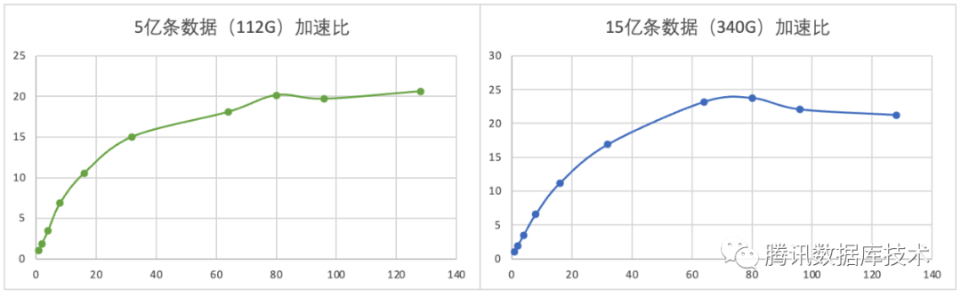 以下是对比了5亿条数据和15亿条记录的加速比测试结果。最高加速比可达到24倍。