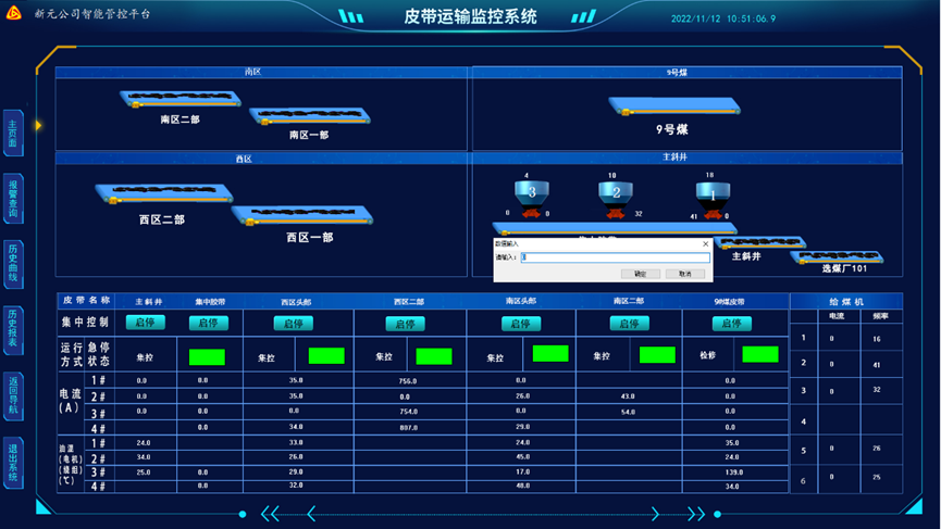3. 操作员站可以对皮带机、水泵、压风机等设备进行远程控制;