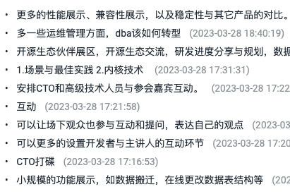在我们 3 月 25 日的 OceanBase 开发者大会现场,有一面特殊的墙,很多用户在这面墙上留下了对我们的祝福、对我们的鞭策、建议、对我们的告白、以及一些碎碎念。
