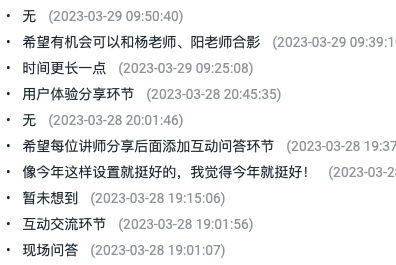 在大会结束的晚上,工作人员撤场的时候,我们将大家的留言带了回来进行了整理,如下。