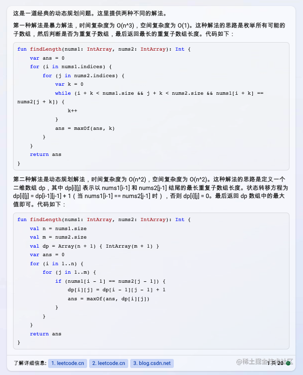 可以看到,这份回答有算法类型、算法描述、算法推导过程、算法实现和复杂度分析,算是一份相对完整的题解,但远远还谈不上优质,与 LeetCode 上优质的题解比相去甚远。