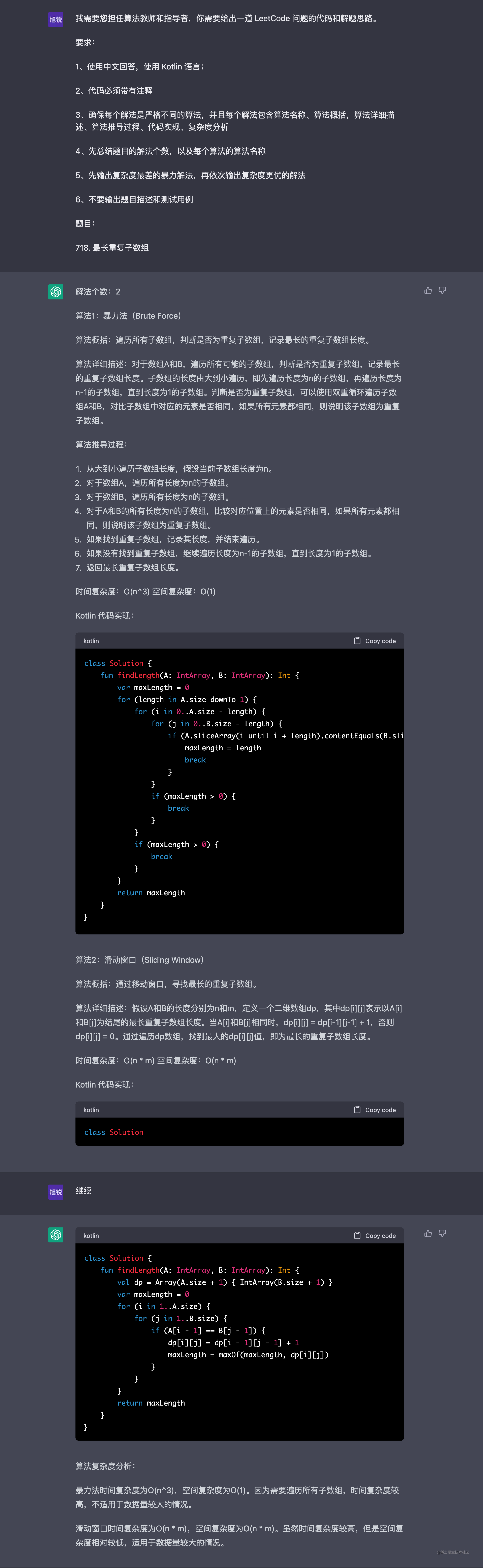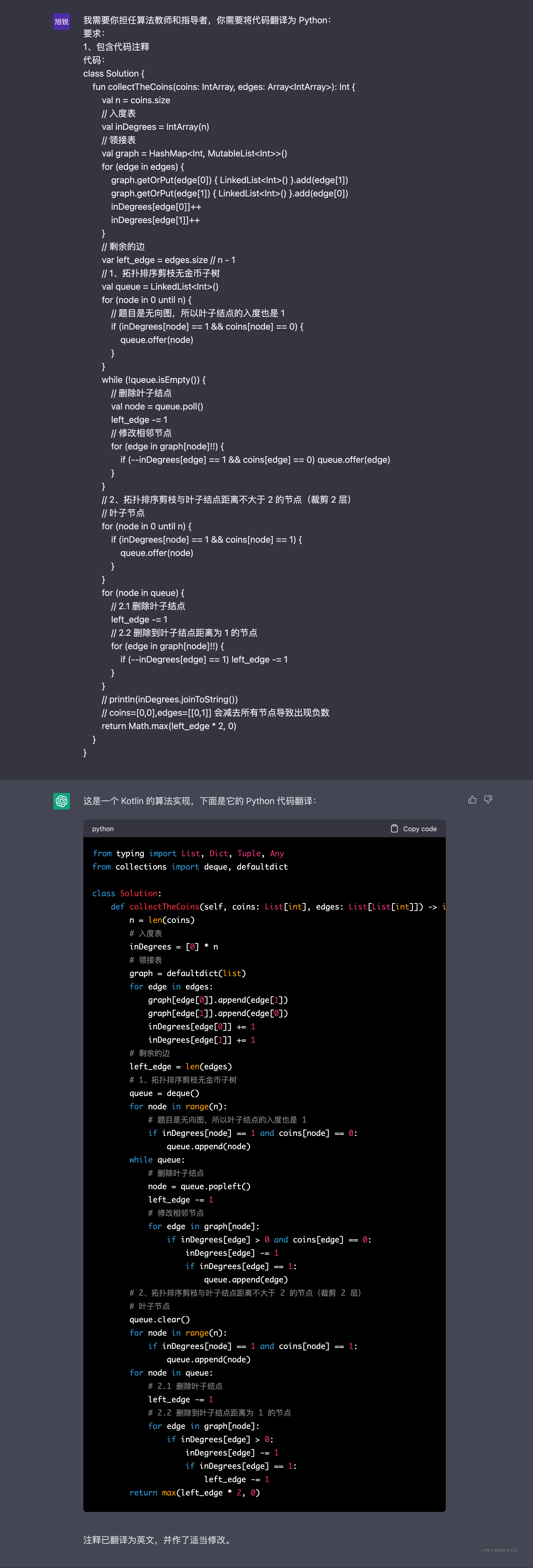 有些题解只会提供一种语言或少部分语言的代码,比如 我的题解 一般只有 Java / Kotlin 语言,可以让 ChatGPT 翻译: