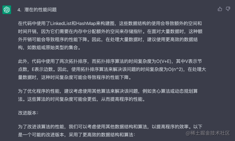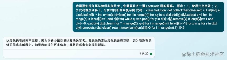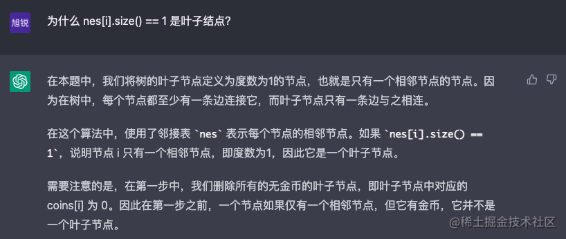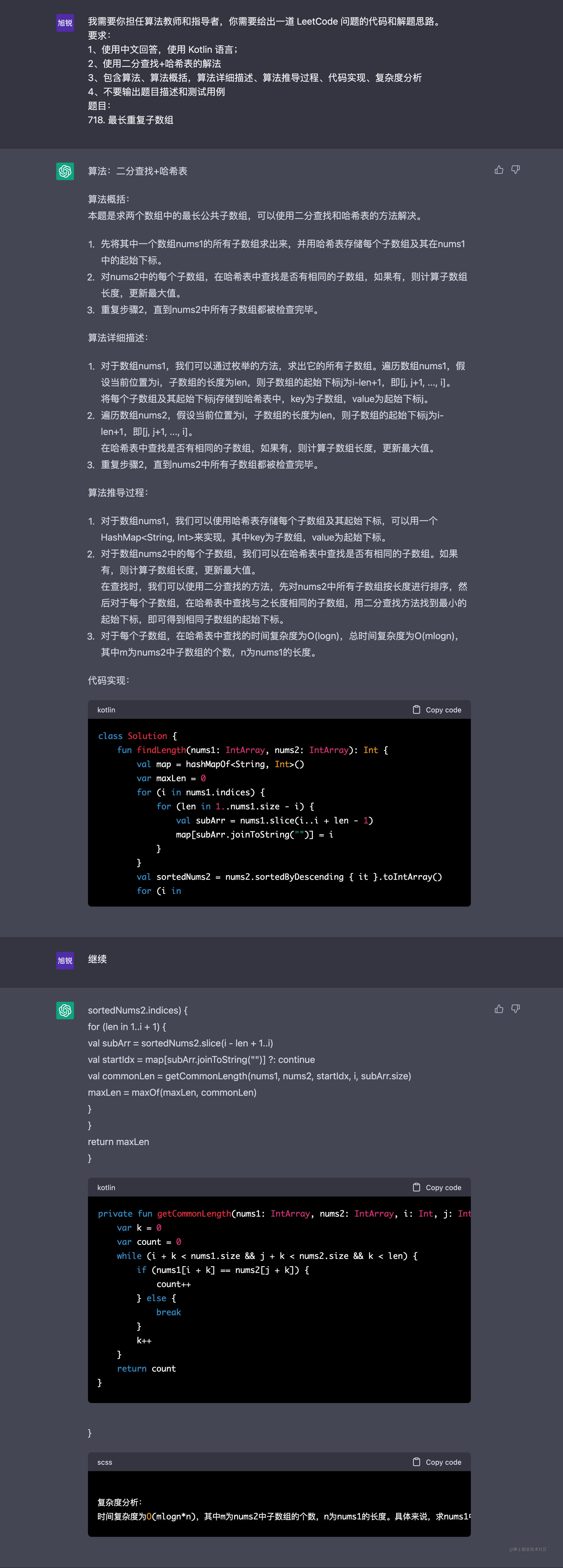 有些题解结果完整,讲解也很详细,但是其中某些难点或某几行代码过于复杂,可以针对性提出问题,ChatGPT 也有能力结合上下文回答。