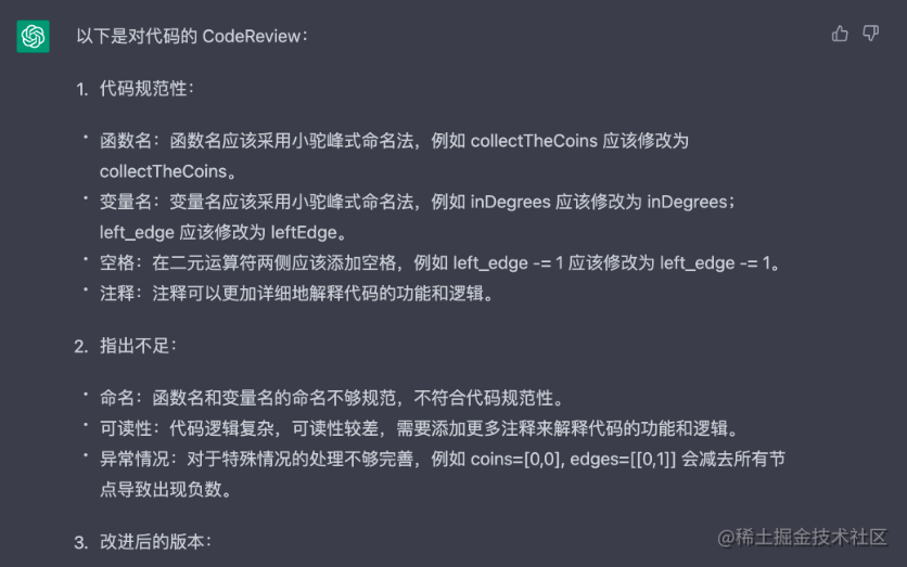 我们可以将自己写的代码交给 ChatGPT 做 CodeReview: