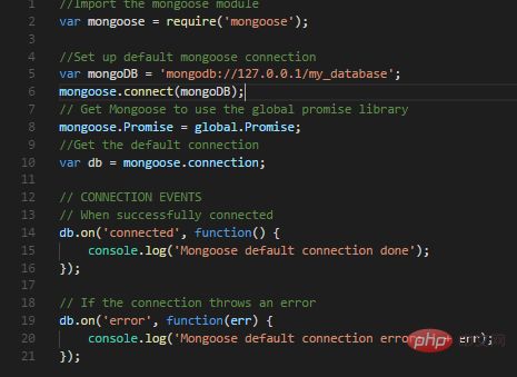 第6行:这些行有助于建立或“open”或启动与mongoDB变量中提到的数据库的连接。mongoose.connect()