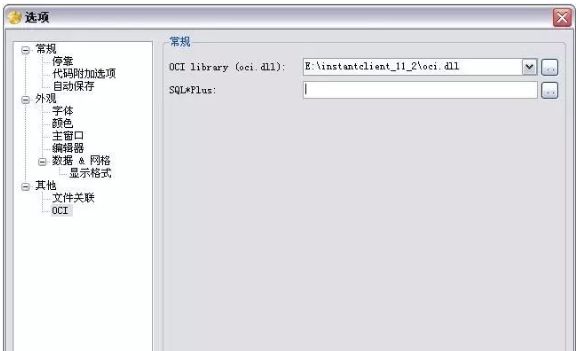 下载完毕后解压到任意一个目录,然后打开 Navicat -> 工具 -> 选项 -> OCI ,如下图所示: