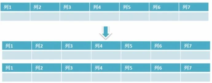 简单来说垂直拆分是指数据表列的拆分,把一张列比较多的表拆分为多张表。如下图所示,这样来说大家应该就更容易理解了。