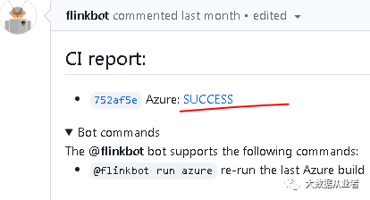 提交PR以后,flinkbot会在微软云自动编译测试你的分支,并给出结果: