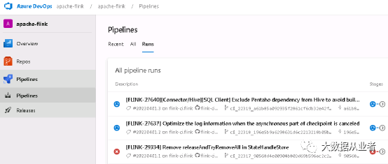 如果失败,可以跳转过去查看具体失败的日志。修改代码后,重新提交。当然,也可以自己通过@flinkbot run azure让flinkbot多次编译测试。不过,并发数有限制。同时提交PR的人多时,微软云上的编译任务会排队。如图: