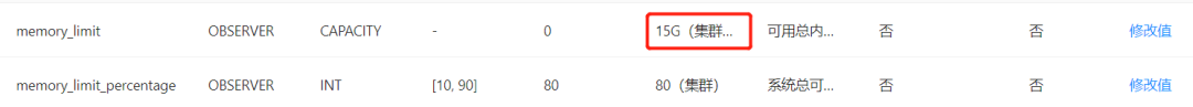 Memory_limit 配置为15G,observer 的可用总内存 15G