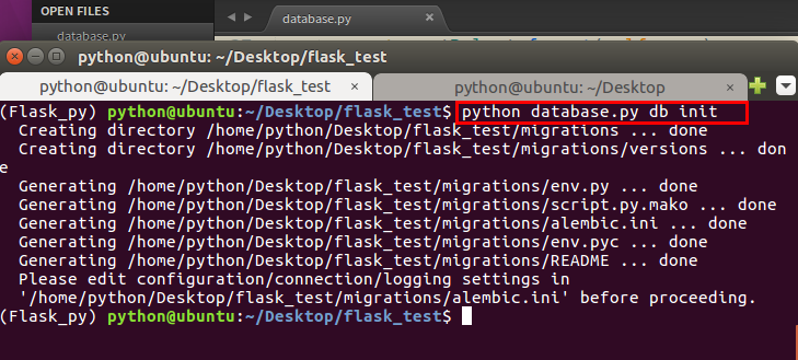 #这个命令会创建migrations文件夹,所有迁移文件都放在里面。python database.py db init