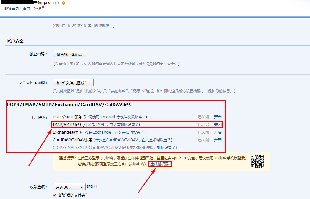 如下示例,通过开启QQ邮箱SMTP服务设置,发送邮件。
