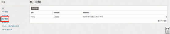 访问密钥ID:指定与IAM用户或角色关联的访问密钥。通过导航到我们之前创建的客户端密钥,在OCI控制台中找到它。