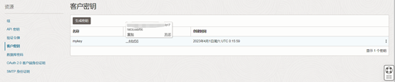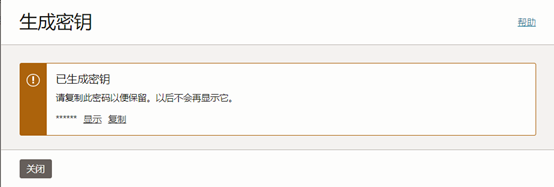 复制生成的密钥,因为关闭此窗口后将不会再显示它。