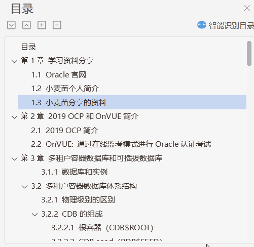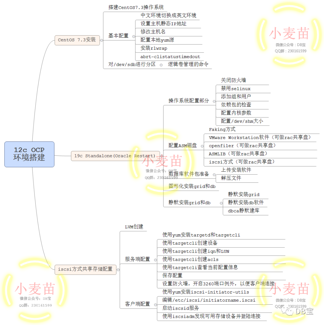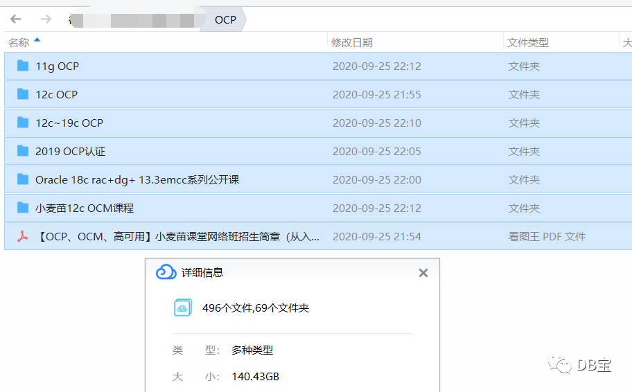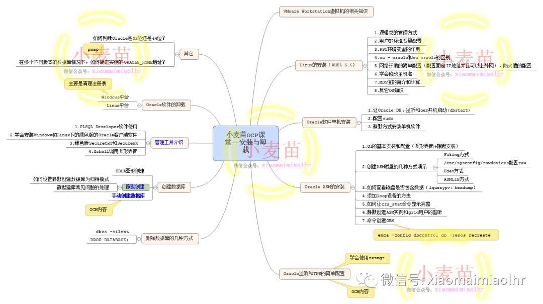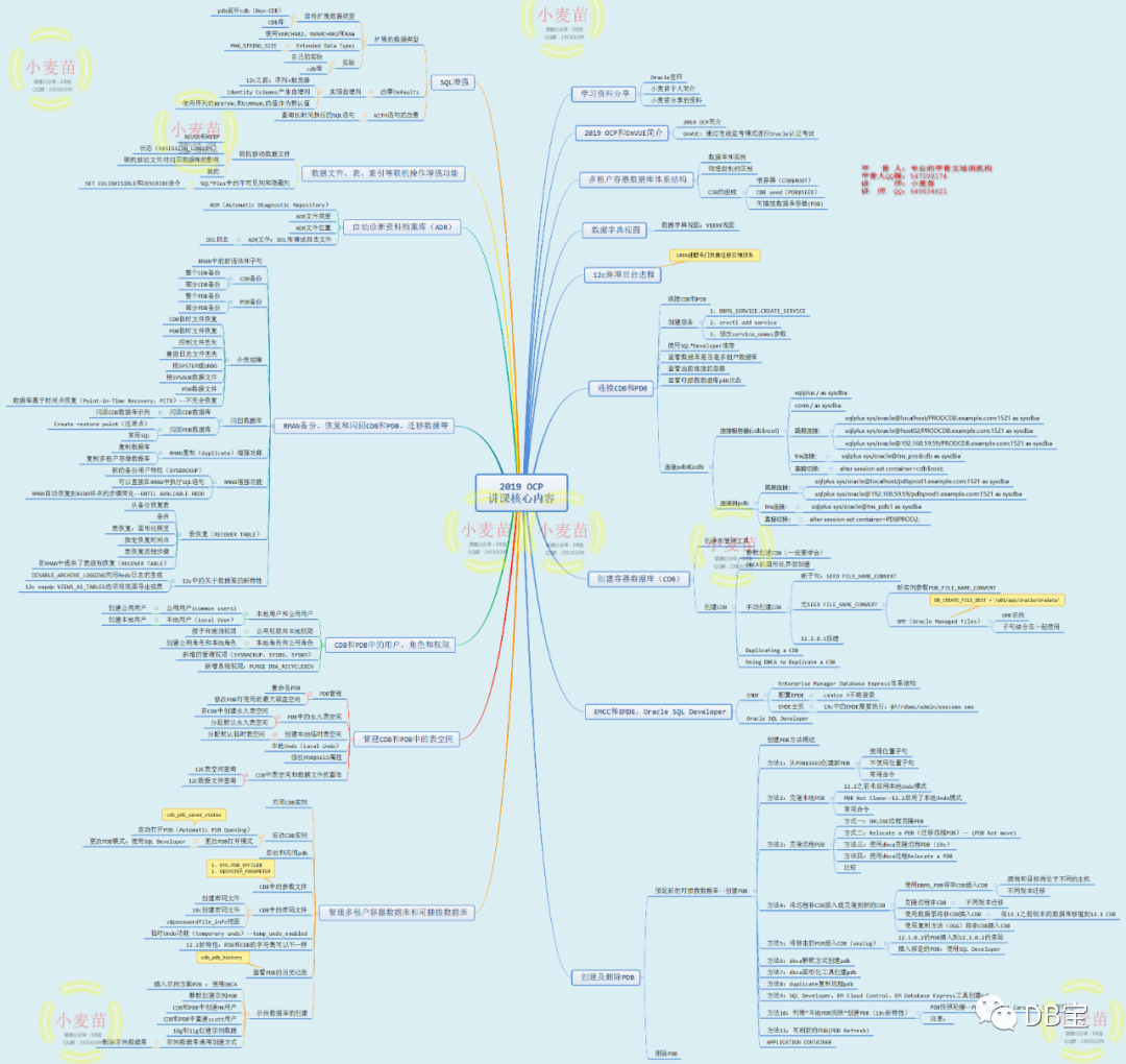 小麦苗OCP 11g课程第1节--RHEL5.5的安装和基本配置(使用逻辑卷):https://v.qq.com/x/page/u0534y1g6u3.html小麦苗OCP 11g课程第2节--数据库软件的图形化安装和静默安装,MD5,配置YUM源,安装rlwrap软件:https://v.qq.com/x/page/m05348z2s4v.html小麦苗OCP 11g课程第3节--图形化建库、静默建库、静默删库、干净地卸载数据库软件、配置数据库资源开机启动、pmap、判断数据库位数等:https://v.qq.com/x/page/x0535r1ucah.html小麦苗OCP 11g课程第4节--SQL语句的分类,如何查看在线和离线文档、sqlplus的使用和设置(导出csv和html文件)、ERRORLOGGING的作用小麦苗OCP 11g课程第5节--基本SELECT语句的写法,NULL的注意事项,Quote (q)语法、模糊查询、WHERE子句和排序小麦苗OCP 11g课程第6节--IS NULL走索引,LIKE模糊查询走索引,DUAL表详解(包括恢复),Oracle中的函数、隐式类型转换:https://v.qq.com/x/page/s0540b5ih94.html小麦苗OCP 11g课程第7节--函数的高级应用,组函数,COUNT的用法和区别,MAX和MIN优化写法:http://v.qq.com/x/page/l0540f9nhgh.html小麦苗OCP 11g课程第8节--多表连接、笛卡儿积、层次查询(树形查询)、WITH语法、子查询、合并查询(集合查询)、connect by和笛卡儿积快速构造大表小麦苗OCP 11g课程第9节--创建和管理表、数据字典、数据类型介绍、操作数据(INSERT、UPDATE、DELETE、MERGE)、DML语句优化的方法小麦苗OCP 11g课程第10节--约束、视图、外键约束必须创建索引(死锁)、Top-N 分析、物化视图简介小麦苗OCP 11g课程第11节--序列、索引、同义词、DBLINK、为什么索引没有被使用、哪些操作会导致索引失效、监控索引的使用、预估索引的大小、索引的选择性小麦苗OCP 11g课程第12节--匿名块、存储过程、函数、包的开发、异常处理、自治事务、分批提交DML、利用触发器完成一些监控功能、存储过程和函数返回集合类型小麦苗OCP 11g课程第13节--ASM的安装和配置、磁盘组的简单维护、创建ASM磁盘的几种常见方式(asmlib)、静默安装GRID软件、EM的创建和使用、如何查看磁盘是否包含数据、如何让crs_stat命令显示完整、kfod命令等:http://v.qq.com/x/page/s0560te3pju.html小麦苗OCP 11g课程第14节--体系结构(内存结构、进程结构、存储结构)--内存组件(SGA+PGA)、数据库和实例的区别、ASMM和AMM、归档模式的切换、多路复用控制文件等小麦苗OCP 11g课程第15节--EM的维护、参数文件(spfile和pfile)、启动和关闭、告警日志、Oracle Restart(重点)等:http://v.qq.com/x/page/j06000r2u4a.html小麦苗OCP 11g课程第16节--ASM相关维护(磁盘组、OS和ASM文件格式转换)等小麦苗OCP 11g课程第17节--Oracle网络管理(动态注册和静态注册、限定IP访问、sqlnet.ora、listener.ora、tnsnames.ora文件的作用、TWO_TASK、SYS登录报权限不足、ORA-12547等)小麦苗OCP 11g课程第18节--表空间和数据文件管理(bigfile、OMF、表空间大小查询、表空间扩展、表空间配额、移动数据文件、如何删除表空间数据文件)小麦苗OCP 11g课程第19节--数据库用户管理、权限和角色、密码文件(Oracle的两种认证方式等等)小麦苗OCP 11g课程第20节--锁和会话(视图之间的关联关系、如何彻底杀掉会话等)、Undo(作用,存储内容、快清除、ORA-01555)、审计(分类,FGA审计、sysdba审计、AUD$表迁移等)小麦苗OCP 11g课程第21节--AWR(如何获取和阅读)、ASH(如何诊断系统问题)、ADDM、统计信息(学好SQL优化必修的一节课)等小麦苗OCP 11g课程第22节--exp、imp(从dmp文件获取相关信息,例如查看字符集,延迟段创建等)、数据泵expdp和impdp(彻底停止expdp,exclude、include,TTS,network_link,expdp卡死等)等小麦苗OCP 11g课程第23节--sqlldr(各种错误处理、酒店开房数据导入)、外部表(字符集设置)、补丁集更新(PSU、one-off补丁、热补丁)小麦苗OCP 11g课程第24节--故障类别、SCN(系统检查点SCN、文件检查点SCN、开始SCN和结束SCN)、实例恢复(前滚和回滚)、闪回体系(包括7种闪回技术及其原理)、DBA_SOURCE的使用小麦苗OCP 11g课程第25节--延迟段创建导致不能导出空表(只在11.2.0.1中存在)、RMAN简介及其常用命令(show all的配置、list、report、delete等)、备份恢复的类型小麦苗OCP 11g课程第26节--catalog库、RMAN备份(累积和差异增量备份)、块改变跟踪、备份脚本分享、定时任务(crontab + windows下的任务计划)小麦苗OCP 11g课程第27节--密码文件恢复、spfile恢复、控制文件恢复、在线redo和归档文件的恢复、v$archived_log的清理小麦苗OCP 11g课程第28节--数据文件恢复、表空间恢复(Undo表空间的恢复)、DRA(数据恢复顾问)、rm -rf误操作的恢复过程、TRUNCATE恢复方法、在丢失归档的情况下如何进行数据文件的恢复小麦苗OCP 11g课程第29节--日志挖掘logminer、bbed简介、坏块的检测(dbv、rman等)和恢复(BMR、bbed等)、如何确定坏块的对象名、OS备份(冷备和热备及其恢复)、非归档模式备份和恢复、RESETLOGS和NORESETLOGS区别、跨版本恢复、只存在备份片的恢复、恢复流程图小麦苗OCP 11g课程第30节--实验课(数据泵之NETWORK_LINK、duplicate from active复制数据库ASM到FS、TSPITR(表空间基于时间点恢复)、TTS(传输表空间))、测试库搭建等小麦苗OCP 11g课程第31节--JOB(DBMS_JOB、DBMS_SCHEDULER、创建删除JOB、是否正在运行、运行日志、故障处理)、分区表(分区类型、分区表查询优化、索引失效、普通表转换为分区表有哪些办法、压缩分区、分区表收集统计信息)小麦苗OCP 11g课程第32节--Windows下单机oracle的安装(11.2.0.4)--图形界面和静默安装小麦苗OCP 11g课程第33节--Windows下数据库创