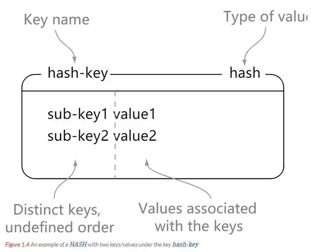 // hash-key 可以看成是一个键值对集合的名字,在这里分别为其添加了 sub-key1 : value1、