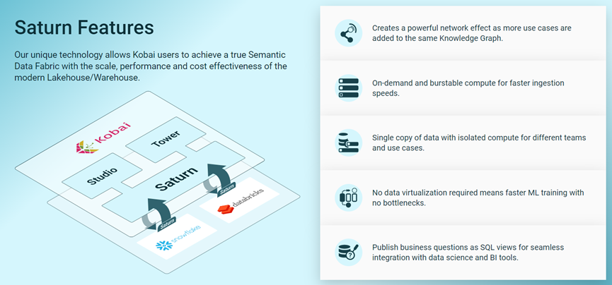 Kobai推出一款新产品Saturn(土星),旨在将知识图谱的力量应用于已经存储在数据湖仓(Lakehouse)的数据。通过在Snowflake和Databricks的Lakehouse上创建一个语义层,客户可以对这些数据运行SPARQL查询,这为他们提供了一种强大的新方法来收集见解,但避免了全面的图形数据库项目的复杂性。