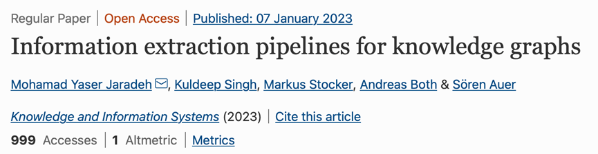 本周推荐的是一个集大成的知识图谱构造流水线工具Plumber,其最新的文章Information extraction pipelines for knowledge graphs发表于期刊Knowledge and Information Systems 2023,作者来自德国汉诺威莱布尼茨大学等。