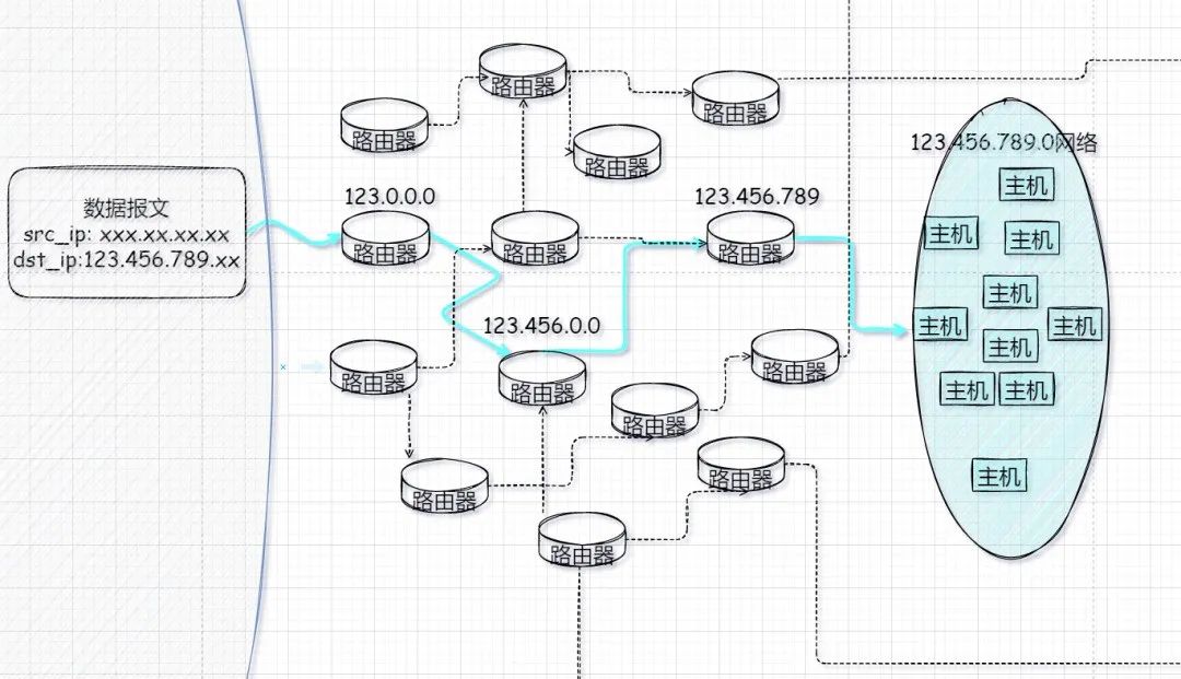 “如果在学校网络内部向访问某个研究机构共享的资料,这就是跨网络访问了。此时 IP 地址才派上用场。ip 地址给出一段段具备层级关系的数字地址,它就像思维导图一样可以通过给定地址高效的找出我们想要的那一项。