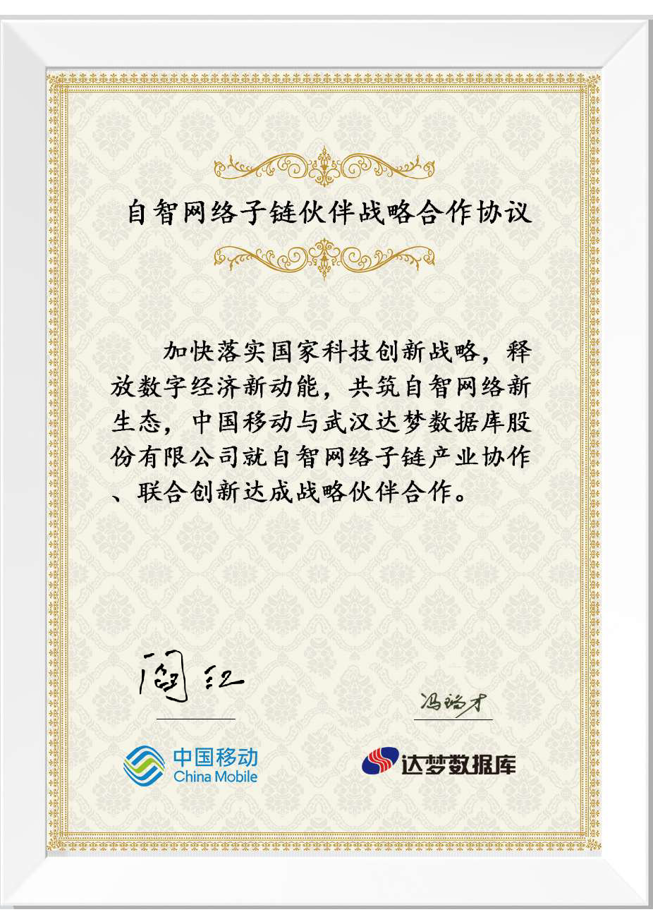 成功落地众多标杆案例。以此为契机,达梦数据将充分发挥在国产数据库领域的领先优势,与自智网络子链成员单位携手,共同打造我国通信运营商行业高质量发展现代产业链,助力中国移动提升产业竞争力。