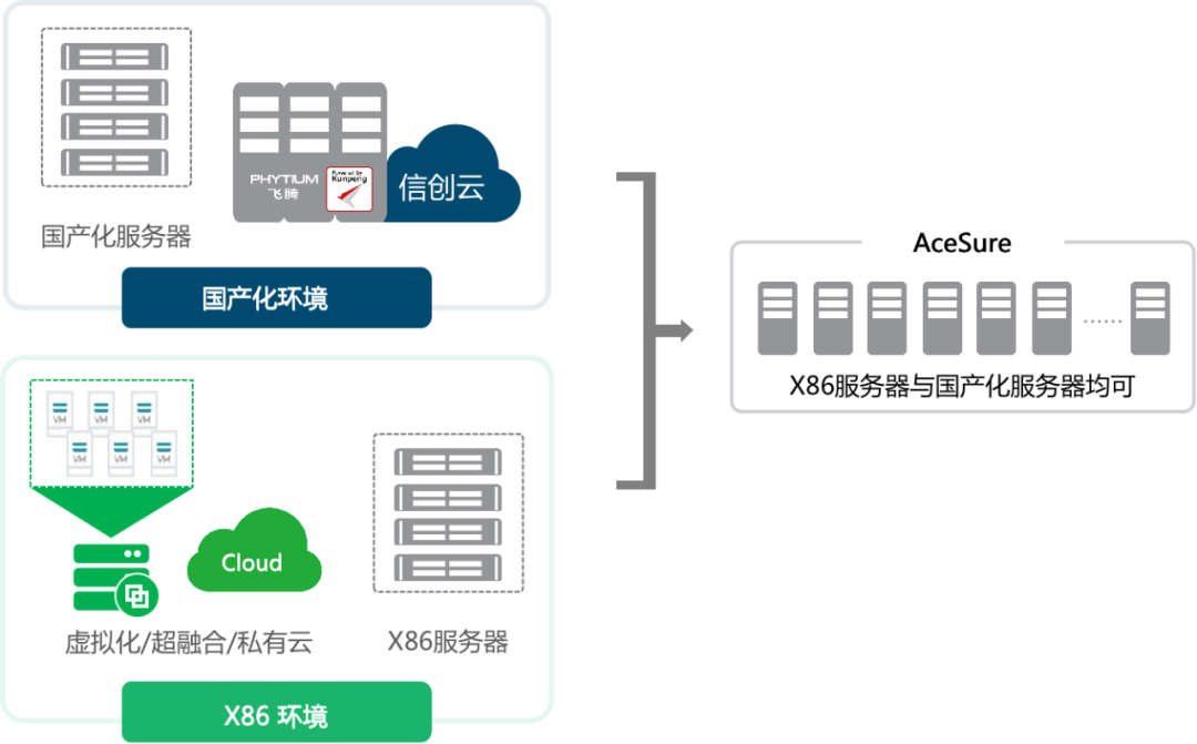 国产化灾备产品需要兼容适配不同的国产化CPU、操作系统、数据库等;