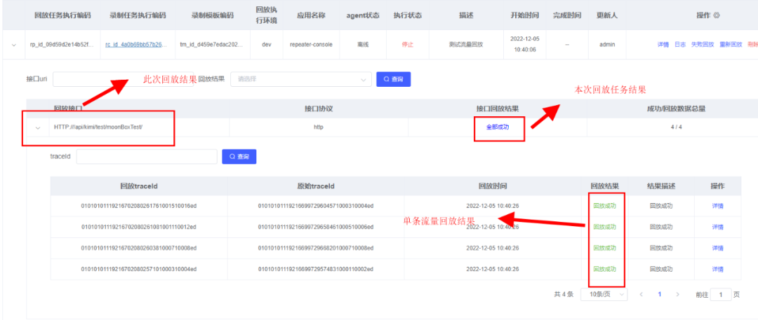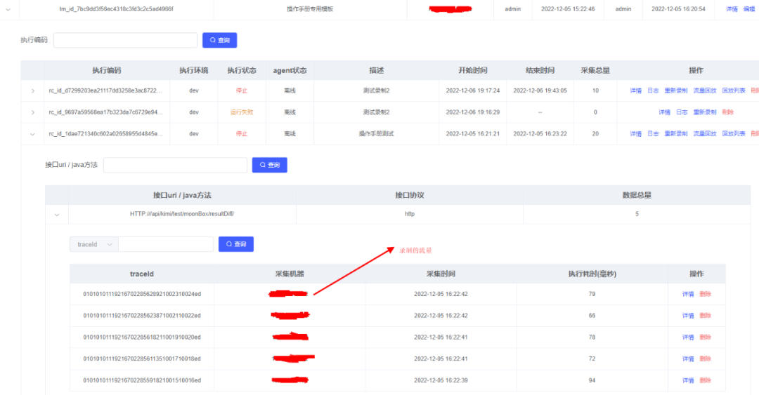 (3)基于任务、接口维度的回放数据管理,叠加各种维度统计、查询能力