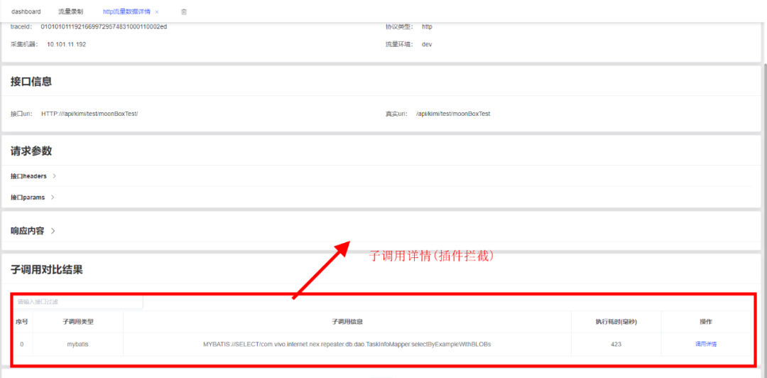 (2)详细的流量展示细节(请求、响应、子调用)
