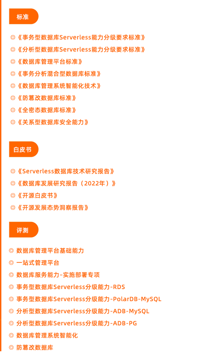 此外,阿里云数据库技术架构部负责人王远、阿里云数据库开源首席架构师于巍在过去的一年里深度参与了每次研究报告、标准制定的讨论会议,并发表了建设性意见。对众多标准的制定,特别是对《事务型数据库Serverless能力分级要求标准》、《分析型数据库Serverless能力分级要求标准》 、《数据库管理平台标准》