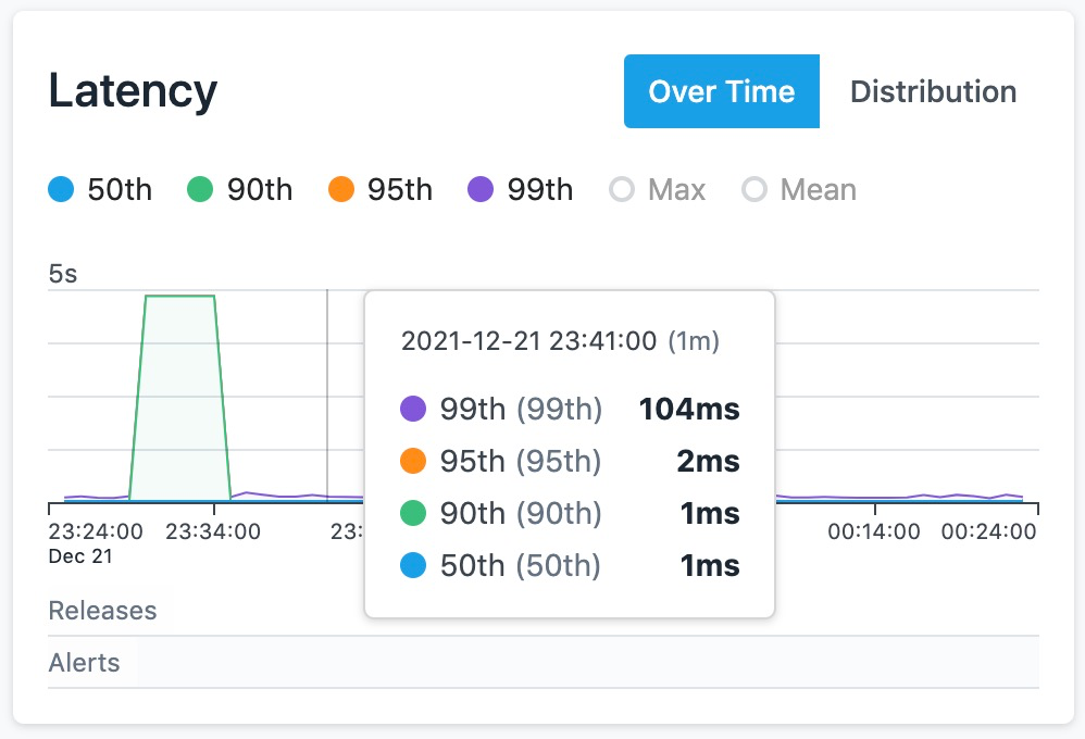 在这个案例中,由于 v1.1 版本的灰度流量要远小于 v1.0 版本,如果没有按照版本维度进行聚合比对,新版本的异常问题就会被整体流量平均稀释掉,难以被提前发现。只能等到发布比例增加到足够大的程度,对线上用户造成更加严重的影响后,才可能被定位。