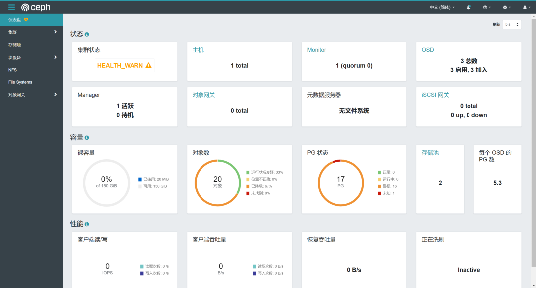 Ceph Dashboard以WebUI方式提供对Ceph集群的监控和管理功能,包括但不限于集群监控、存储池管理、块设备管理、文件系统管理、对象网关管理等功能,已经被广大Ceph爱好者所接受和喜欢。